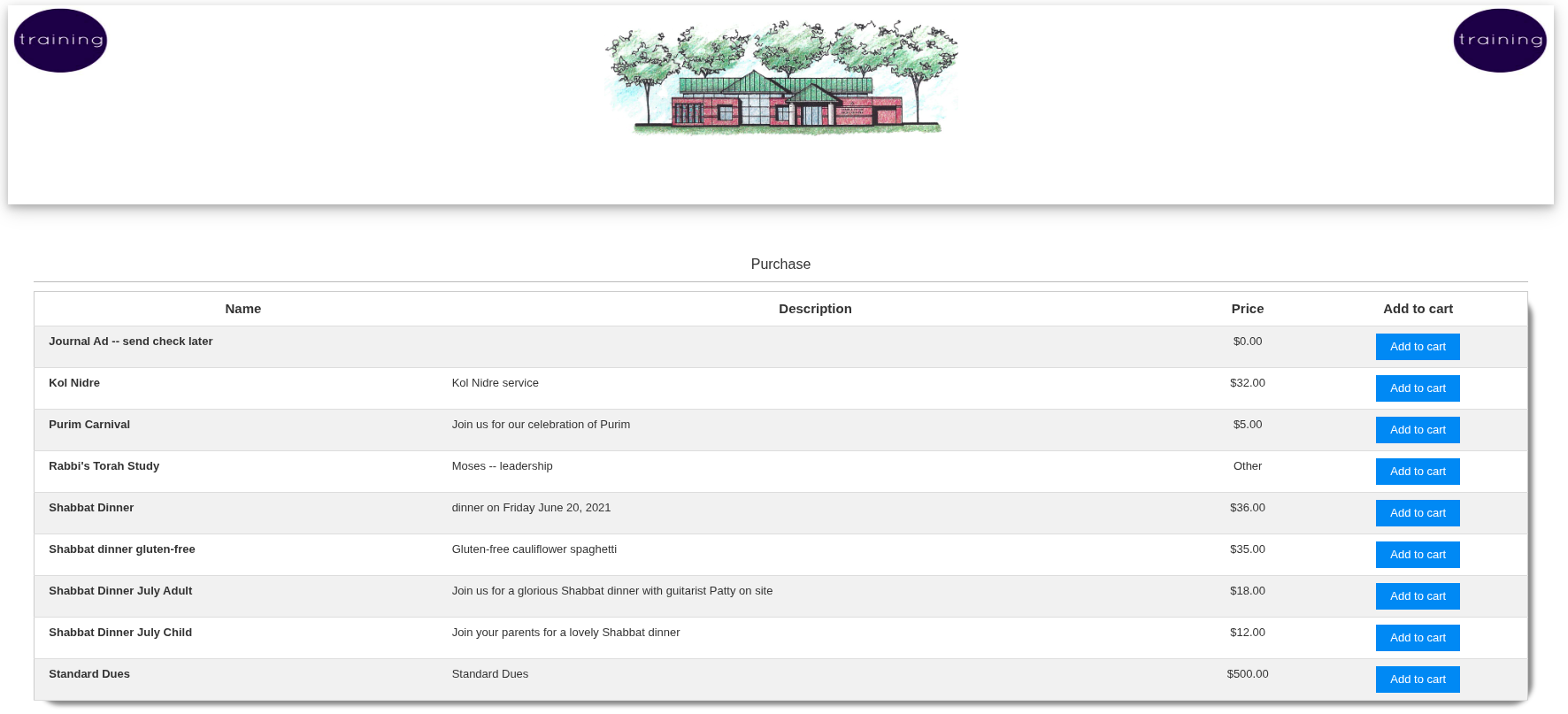 The ShalomCloud shopping cart provides synagogues with a versatile tool for handling event registrations, product sales, and fee collection. The shopping cart enables simple event registration and the purchase of fixed-priced items, including classes, high holiday tickets, Lulav and Etrog sets—really anything with a price, including zero.